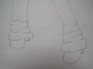 then you fold it up until it has the wished length and add a pin to make sure this fold stays like it when taking the pants of 😉 (and put the pin like in the drawing because this way its most unlikely you get hurt when taking the pants of again)