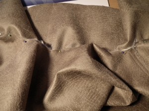 now pin the collar in, the seam allowance of the neck-hole over the collar