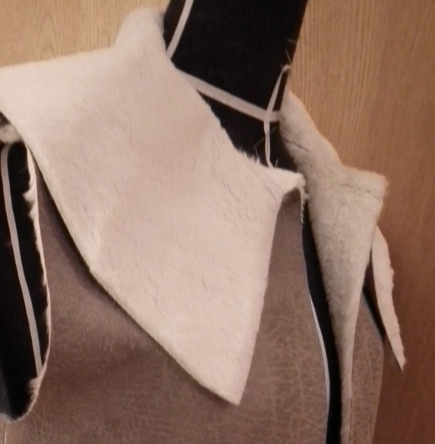 So this is another trend this winter: clothes made of fur. I just love to work with fake-fur, especially if it has fake-leather on the other fabric-side, because this way you can do reversible garments and don’t need to worry about lining. It is also very soft and just a joy to handle, the only down part at fur is that if you cut it the hair from those new edges is flying around everywhere and also in your nose so you gonna sneeze some more, but thats why they invented the vacuum-cleaner. 😉