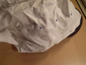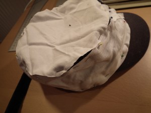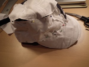 Pin some of the old fabric on the side-part of the cap (or if you don’t have any use paper, but then you need to be more careful so you wont rip it).