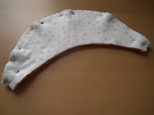 Also cut the shield twice of the fusible interlining and iron it on the shield parts.