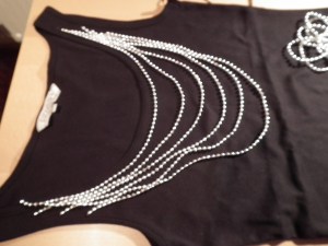 So I decided to do some tutorials about how you can change your clothes without needing much time nor money. For this one you need some tank-top you already own or bought new. I bought a new one, because I give away all clothes I did not wear for a long time. But maybe your different and have one laying around you don’t wear anymore. 😉 This was fun, it actually took me about half an hour and the fused pearls cost me o.55 € per meter, so in total 1,65 € for a new top ;). I hope you enjoy it!