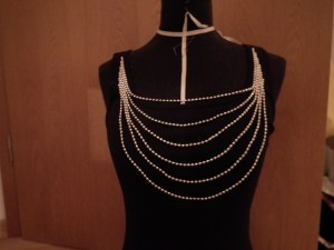 Put the fused pearls on your top and arrange them the way you want. Then sew the ends with small stitches to the top on both sides. Don’t make stitches to much down, because the beads are not elastic. (See how I sewn them on in the video above.)