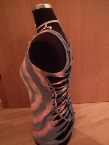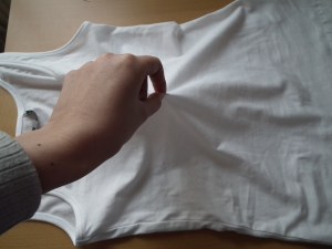 I did some tops and long-sleeves with batik dye, because I loved to do it as a kid;), its easy and fun and I also like the look of it, it always reminds me of summer and I love summer;). So with this shirt I did the dye and the braiding, if you like it, you can also do only one of them, the braiding works with any jersey-top for the dye you need very light colors or white works best. You should buy the machine wash dye for your garment, because it stays in better, if you just dye in a bucket the color will fade of easily. And if you stick to the instructions of your dye, there should not be any color remaining in the machine, ruining the next clothes you wash with the same machine, but when that should happen I am not responsible for it.