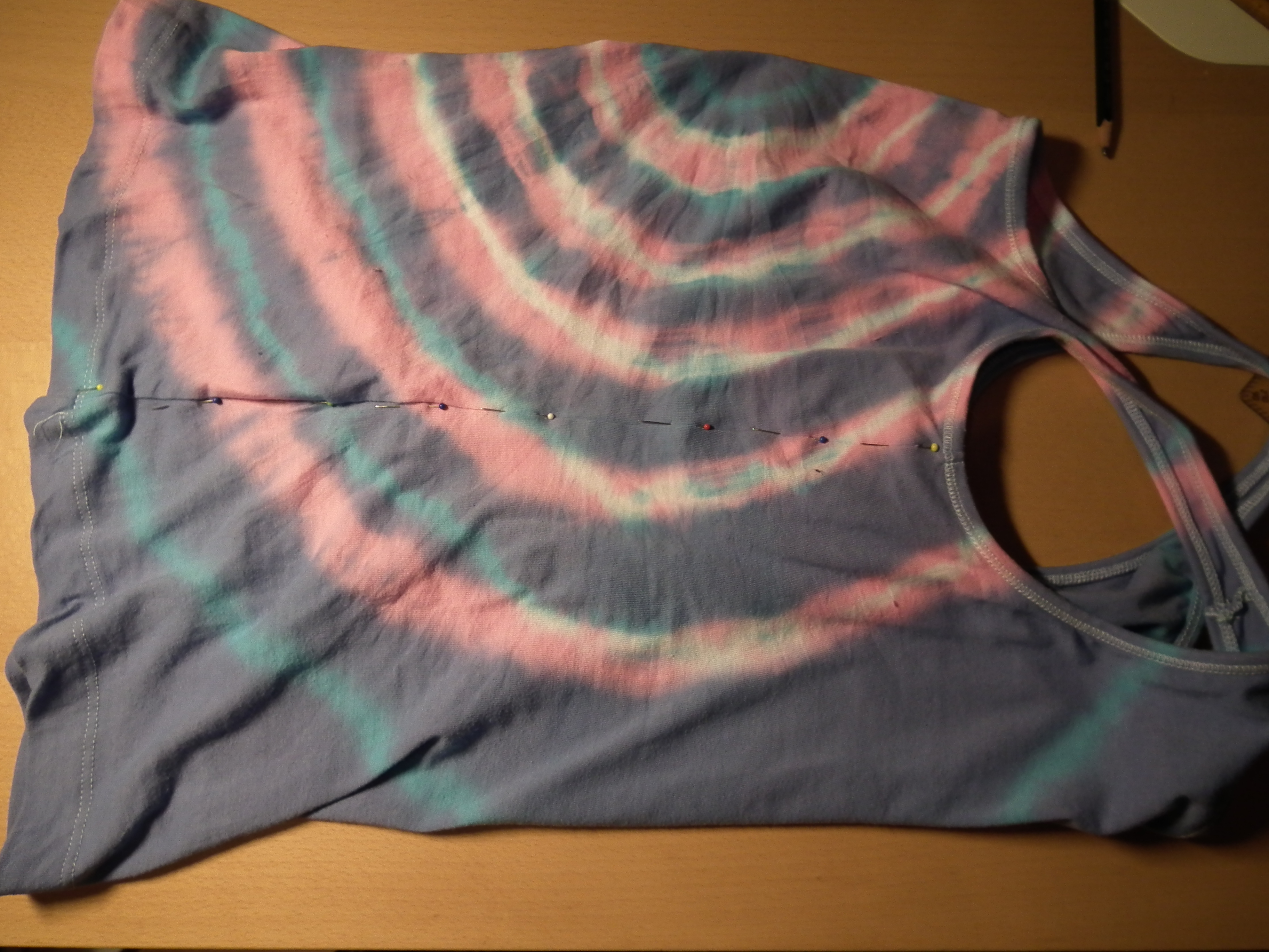 modifications: tank top with batik dye and braided back