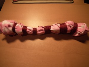 Then you dye it pink in your washing machine following the instructions of the dye you bought. Then you get the yarn carefully off and let it dry.