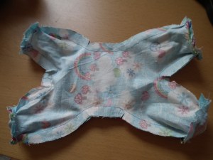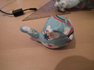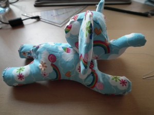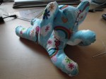 I made the elephant out of the rest of the fabric I used for the baby-pants. I had some troubles with this one, even though I really like making toys, but I think the end result is cute anyhow.