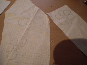 draw some flowers on fabric scraps of the yellow cotton