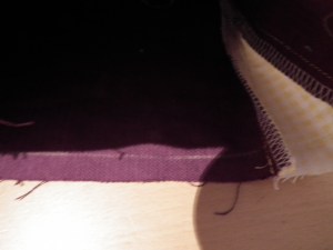 next pin the flap to the front, sew it but leave 1cm (or your seam allowance) at both ends open