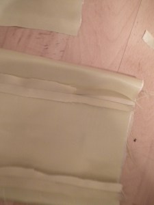 I cut the leftover of the sleeves I already pinned in and used it to cut the other sleeves the same. be careful that you pin your sleeves to the bodice in the right way… the marks normally help prevent that, but better control again, that the back of the sleeve gets attached to the back of the bodice.