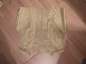 now you can start with the lining (my least favorite part as I said, well I survived), pin the front parts and sleeves parts together and the fold at the back part