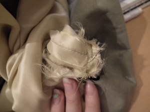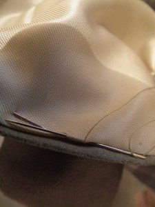 then fold the lining seam allowance inside and pin it to waistband… and guess what: more hand-sewing