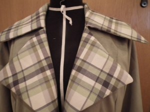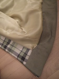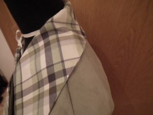 then reach inside and pull the seam allowances at the shoulder of jacket and lining out (ignore my foot and bags πŸ˜‰ )
