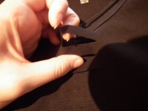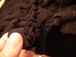 the sleeves are still boring, so fold the sleeve seam one one fold, then cut the fold into strips and mark another line in the middle of the sleeve, fold it and cut into strips again