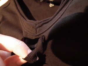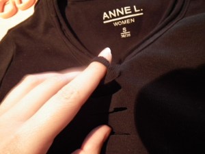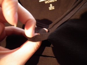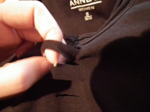 put the long-sleeve on and mark the middle and then around and under your breast on one side, wear it for a little, moving around to make sure that line does not move up (so much that through the later braiding you can see anything you dont wanna show)