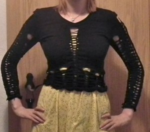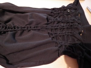 so another upcycle idea with an old long-sleeve of my mum. I certainly like the look of it there is just one small problem: my mum is a size smaller of me, also 10 cm shorter and wearing xs, so normally I still would fit in most of her stuff as long as its elastic š which I forgot to consider: through the braiding the shirt gets less elastic, so a lot tighter, as you can see I can still manage to get inside, but its a little trouble. š So if you want to do something similar better use an longsleeve that fits right or is a little bit loose. š As all upcycles with braiding this one does not require a sewing machine and is easy to do, because of the amount of braids it took me 2 evenings instead of just one. I hope you have fun with it! (The dress I am wearing under it is by H&M)