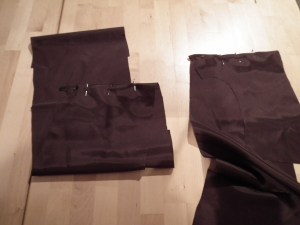 then cut of the coat fabric additionally the bottom 3 cm of the cape parts
