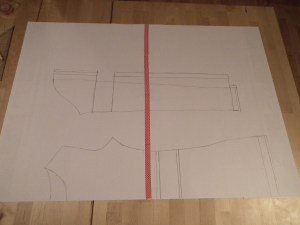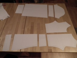then draw the pieces on another paper and add seam allowance, also do one top front, with a lower neckline, and copy the sleeves over to have the whole sleeve parts