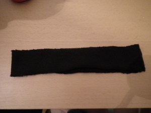 now you need to measure around your neck-line minus a few cm and cut one strip 5 cm wide, sew into a ring, fold in the middle and sew to the neckline