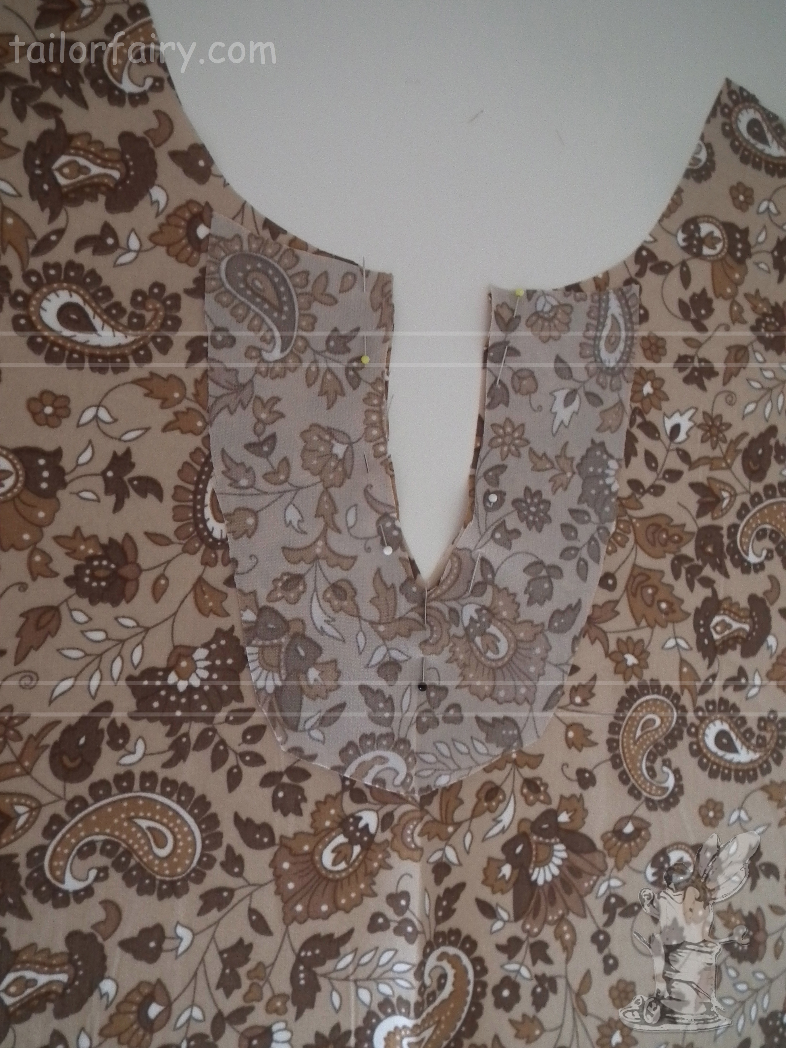 with my cut pieces I first placed the facing on the neck hole, pinned and sewed