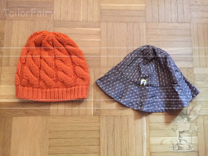 My hats will be on my next tour, for sure. I wore both at the camping grounds when I took off my helmet. The knit-hat kept my hair from dripping or worked against rain and the sun-hat (as the name says) against the sun… and both covered my helmet-hair. :p