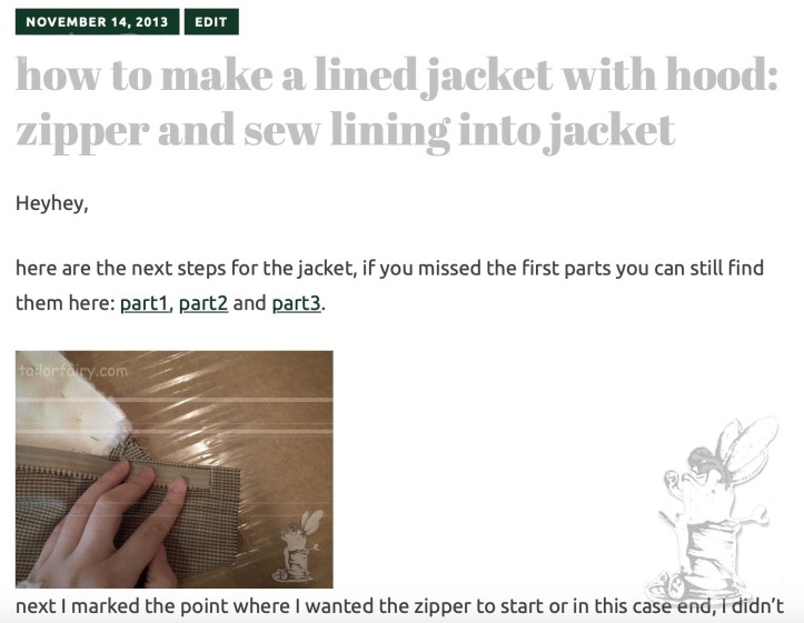 It is a post from a series about me sewing a jacket with a fake-fur lining. And this famous post describes how I sewed the zipper and the lining into the jacket.
