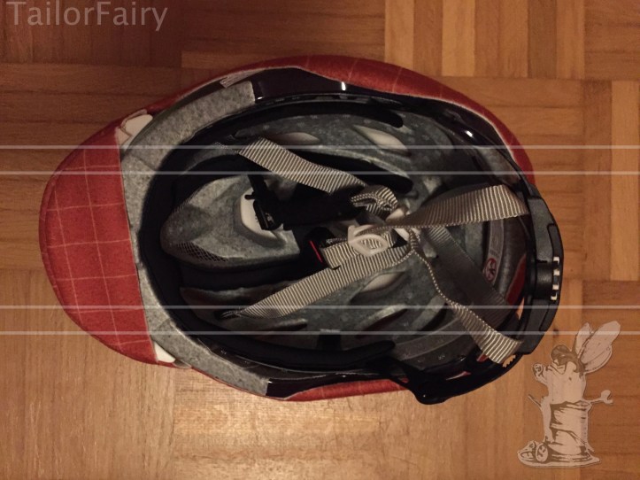 As I told you before I had some more of the excellent fleece fabric from Spoonflower, I used for my new bicycle sweater. When I was on my bicycle tour in June I had one rainy day and bicycle helmets have holes, so I knotted a microfiber-towel on top of my helmet, so it would not drop on my head and around that much. And I really liked that solution, even though it looked bizarre, so I thought about sewing a hat for my helmet out of a towel, but then I had that lovely fleece…