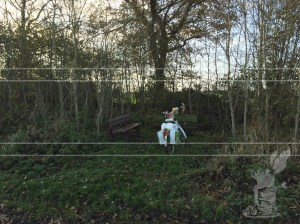 I left in the morning at 10 in full winter-cycle-clothing, Button was also wearing his jacket, and soon after got warm (even though it was about 6° Celsius outside) … after 30 minutes I decided to loose the jacket and actually kept on pedaling in just a sweater and my vest/waistcoat for the whole trip. While wearing my winter helmet, thick gloves and warm winter boots ;). For some weird reason, my panniers kept moving to the front the whole day, where they collided with my pedalling feet and I had to get off and push them back. So with a few stops to lose the jacket and readjust the panniers I reached my break-point at 11:12, where I took a quick break of 10 minutes to eat something. Soon I got cold so I went by to cycling. Its the same rest stop as my last trip, I put the pictures together, so you can see how nature changed over 1.5 months.