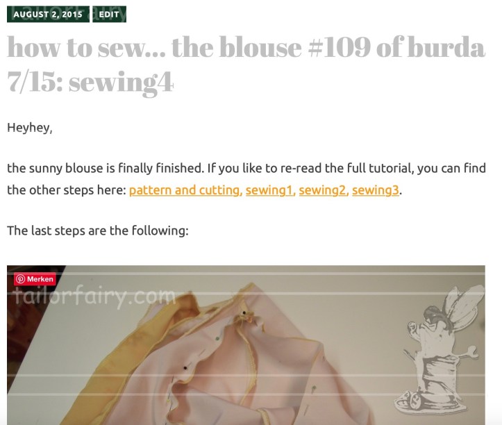 Another most-read post of 2015 was the last part of the tutorial for my yellow blouse. I still have it, I think, but in a box in my cellar somewhere to determine if I should give it away. Not because I did not like it anymore or it did not fit anymore, just because I wasn’t wearing it a lot. I think it is because I picked the wrong fabric, it is to warm for summer and with the shorter and wider sleeves to cold for winter. I sometimes wore it over a long-sleeve… But thinking about it now I should find that pattern and maybe make myself a summer version with different fabric.