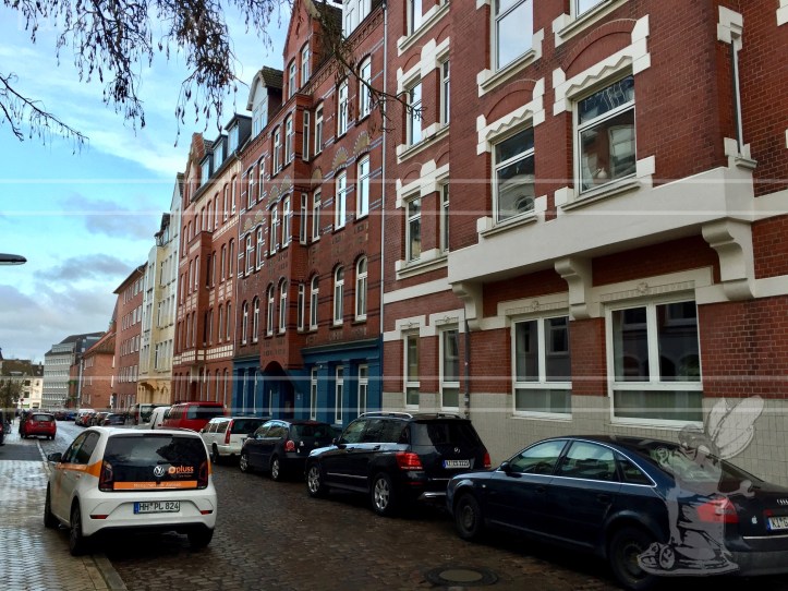 Then I went to the underground station, to get to Hamburg Dammtor to take a Regional Express to Kiel. Which all worked just fine until I reached Kiel and discovered that today was the day the busses of Kiel did a strike. So there I am in a strange city with no busses. And of course, google maps went on strike, too, or maybe it was the internet connection. Anyways I had to go old-school and go back into the train station and into the next bookstore and buy myself a map of Kiel. And start running… or at least walk really fast. Button in his cosy bag thought this was all an excellent adventure and was laughing a little about me getting nervous.