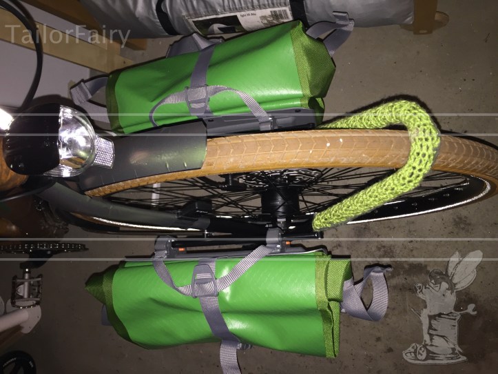 Today I tested to mount my new front panniers and buttons new seat on Charlotte: