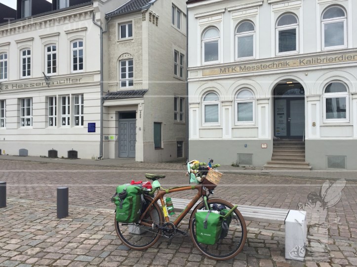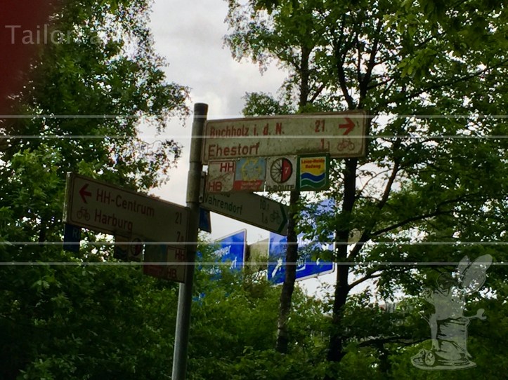 Now came one of the tough parts of this trip. By the way, they did not have signs for the Leine-Heide-Radweg on this part, I followed the ones for the bicycle-route from Hamburg to Bremen, which is the same for some time. But the signs are not everywhere, and so I missed a turn, leaving me at a busy shopping street starting to feel desperate. So I started pushing to see if I can find someone to ask, luckily I saw a DHL-delivery-guy and thought, he probably knows the area. He stared at my map a very long time… I already was losing faith, when I told me where I was and how to get back on route. And he was pretty correct. When I was just checking up if I was one the right track a little later I got first asked buy a black guy about Charlotte and if her frame was made in Ghana and then some other guy stopped and offered his help and talked to me about how cycle-touring alone would be boring for him. 😉