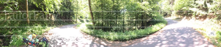 It was at a bus stop, where a bus was taking its break at the same time. So I asked its driver for the way, chatted a little before he and I had to leave and his directions were fine for the street part. When it turned into a forest, I finally was in the shade, but also very unsure if I was still on the right way. Luckily a jogger came my way and reassured me and a few km later I could see Wolfenbüttel: