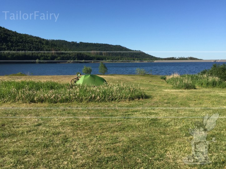 When I finally reached the top and was able to roll down again, I saw a lot of other bicyclists that looked as miserable as I felt… In German, we say “somebody is over the mountain” when he/she finished the hard part or gets better after an illness… that’s exactly how I felt. Rolling down I met some more nice people and even one other solo bicycle touring female. She started talking to me when she noticed the fish on Charlotte’s fender. This way, we rolled down to the Innerste-Talsperre and called it a day. The campground did not have any internet connection, but look at that: