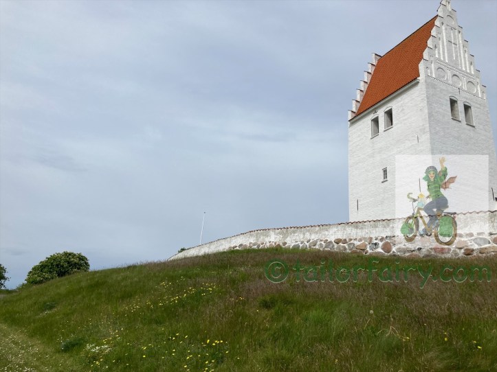 That was fun, next came the scary part: I had to cycle 6km on a busy road on a small shoulder over a damm from Bogø to Møn. So 3 islands today 😉 I was so happy, when we finally turned away from this street. Shortly later, I saw this nice church.