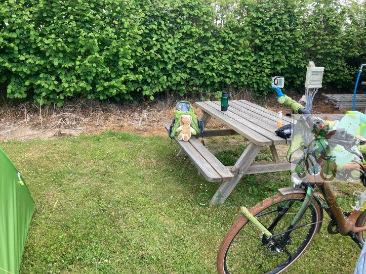 A few km later I reached my campground for the night. It is a cute one, with most people living here or spending all their weekends here. But they have this nice piece of grass right next to the toilets and showers… and it is the lowest price yet.