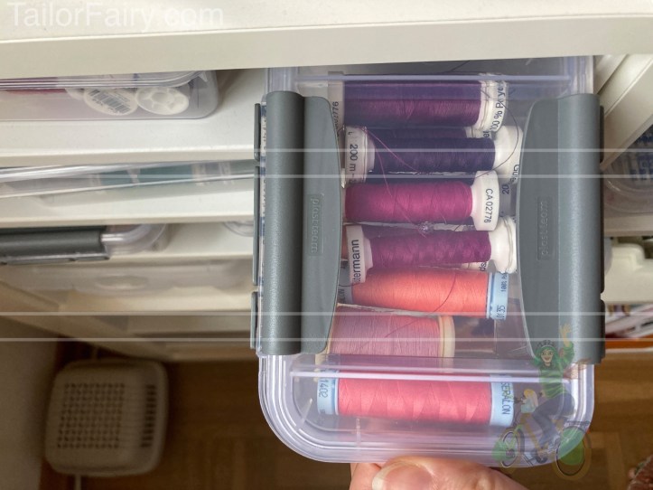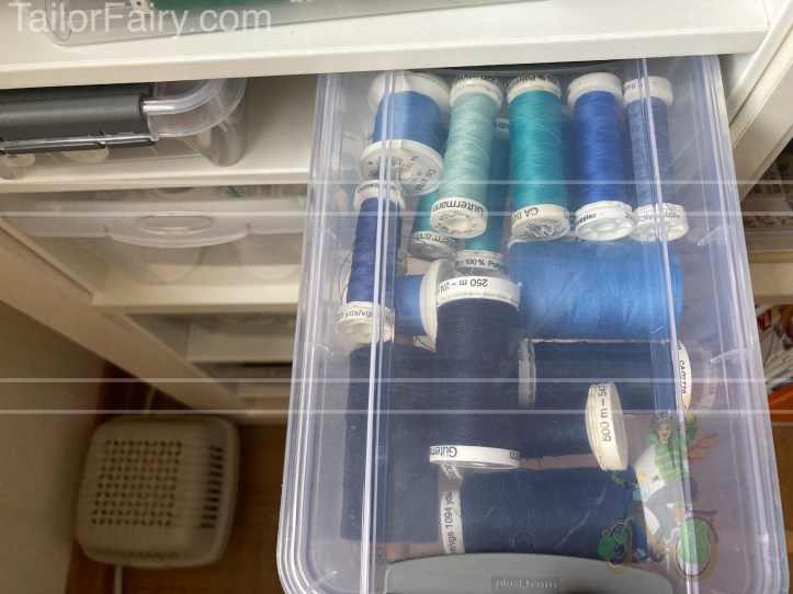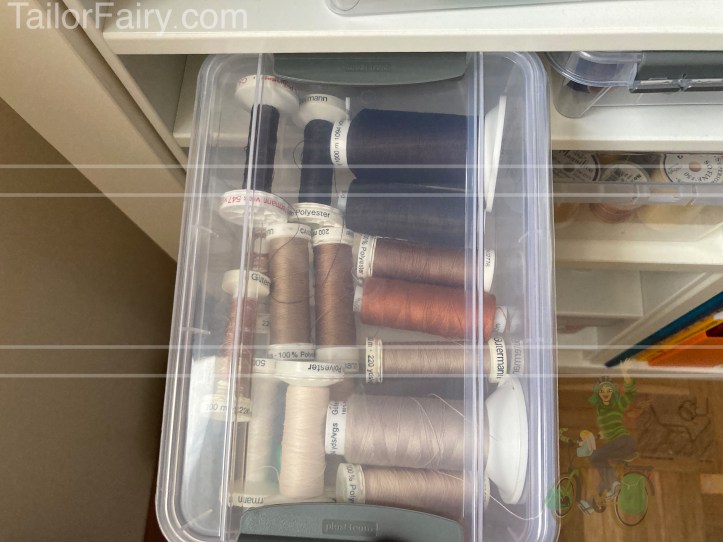 After 7 years I thought I give you an update on how I organize my sewing supplies now – today: threads.
