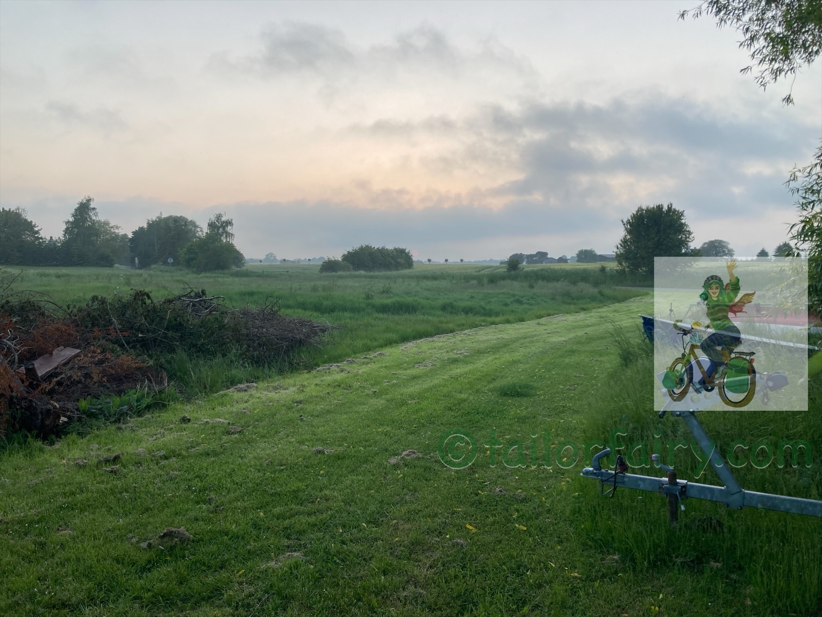 So my neighbors left around 9, before I even had anything packed, but I am happy to report I left at 10:25 am. After a short thunderstorm at 5:30 am, the sun had come out and it was quite warm. The next part was well signed, but some ways were very small and lots of plants tried to take them over. Also the weird aching started, it felt like cramping, but in between my rips… weird. So I stopped after almost 9km at a big parking lot and got my chair out. And took a long break to give the muscles time to relax.