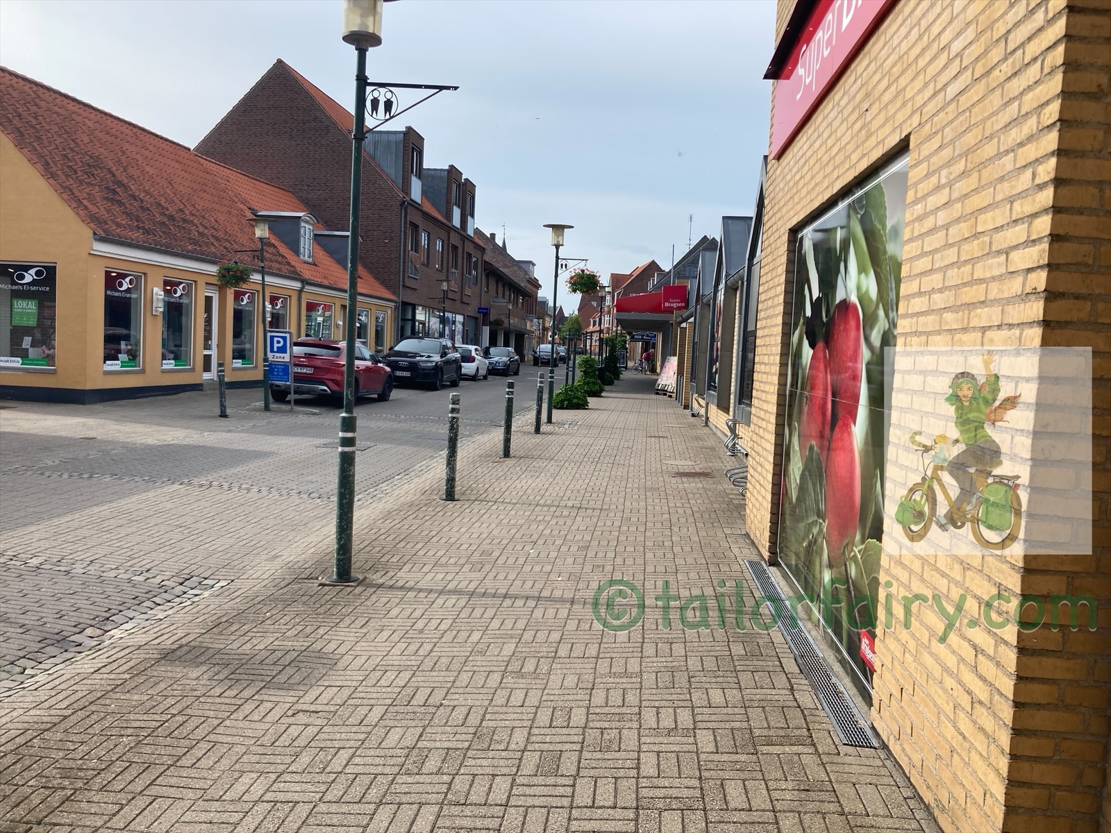 a few km later we reached Sakskøbing, where we went to the camp ground. I was here before, 2 years ago when cycling the Danish Baltic Sea Route. So I remembered it was a nice small campground with free showers. I called the number at the door and the manager said to find a nice place for my tent and he would find me later. He still has not, so I do not know yet how expensive it will be. But I took a nice shower and then walked into the towns centre to buy some groceries.