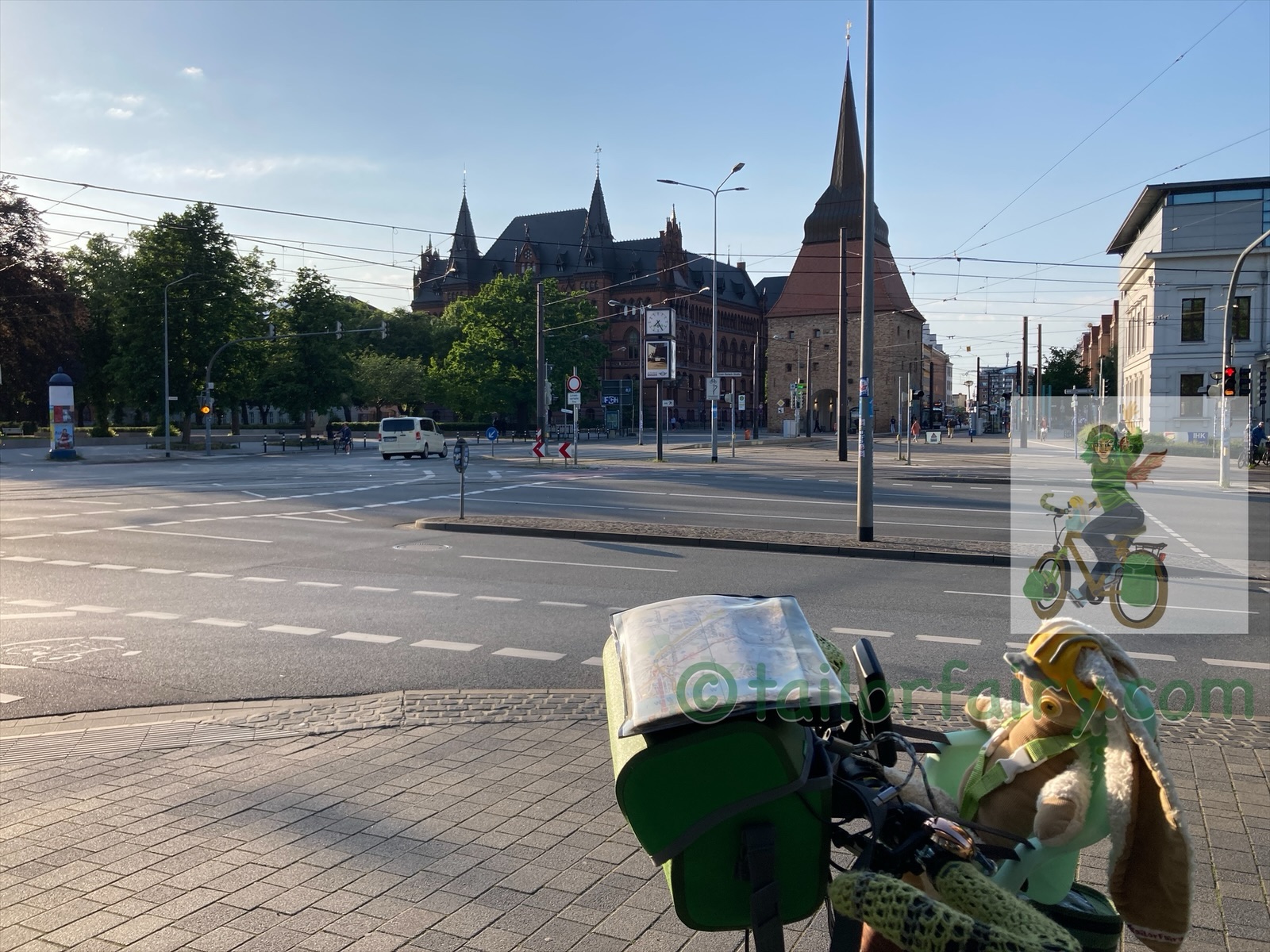 The ferry was a little late, so I had even less time in Rostock for those 12km. But we started well and would have made it, when it sounded like a little explosion followed by a pfffffff… and Charlotte’s back tire was flat again. So I had to push her for 5 more km, before we reached the train station. But I took some pictures for you: